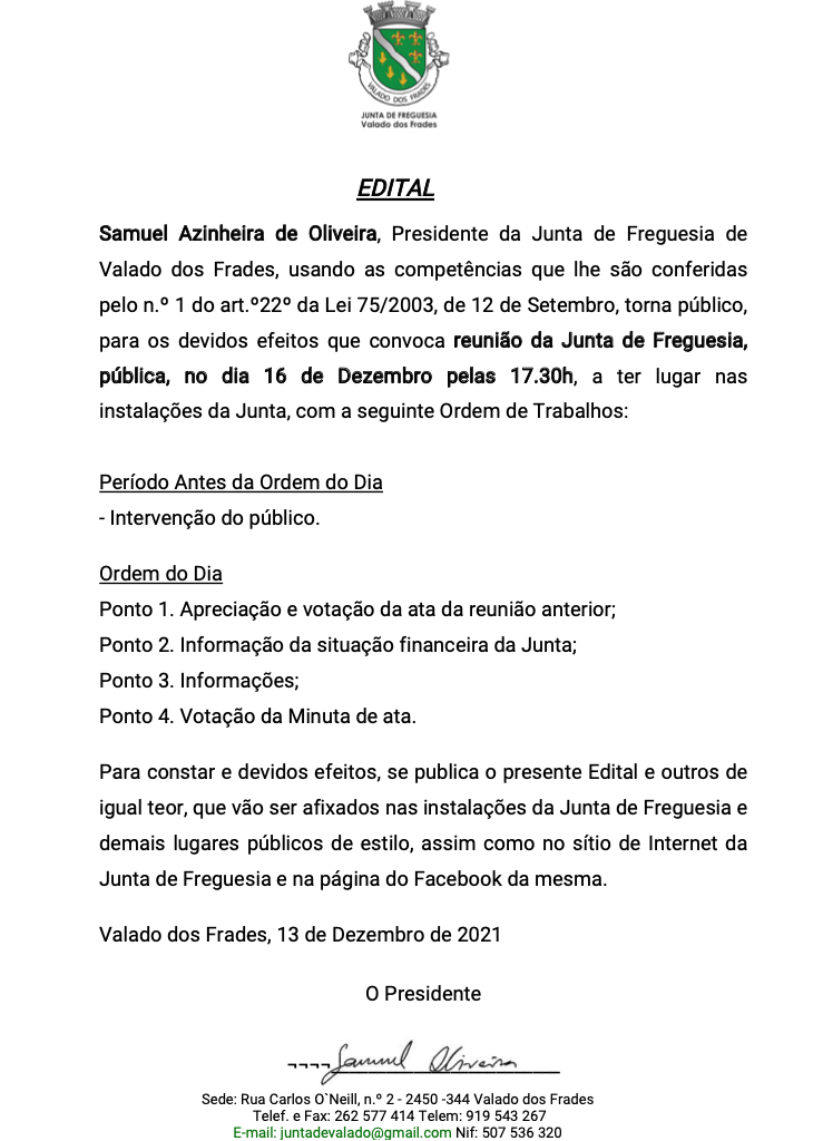 • Edital Reunião de Junta de freguesia pública
