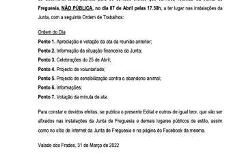 Editais Suspensão da sessão da Assembleia de FreguesiaPor JF Valado dos Frades, Há 4 anosDezembro 22, 2021